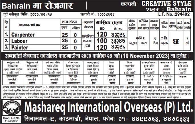 Mashareq International Overseas Pvt. Ltd. is an overseas employment and manpower recruitment agency based in Kathmandu, Nepal. We specialize in connecting skilled and unskilled Nepali workers with reliable employment opportunities abroad, particularly in the Middle East and other international markets.